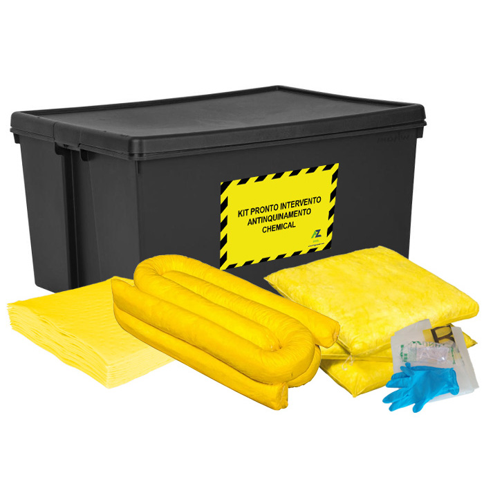KIT di pronto intervento CHEMICAL in contenitore dotato di ruotine pratico di piccole dimensioni per intervenire tempestivamente sulle fuoriuscite accidentali di liuidi pericolosi
