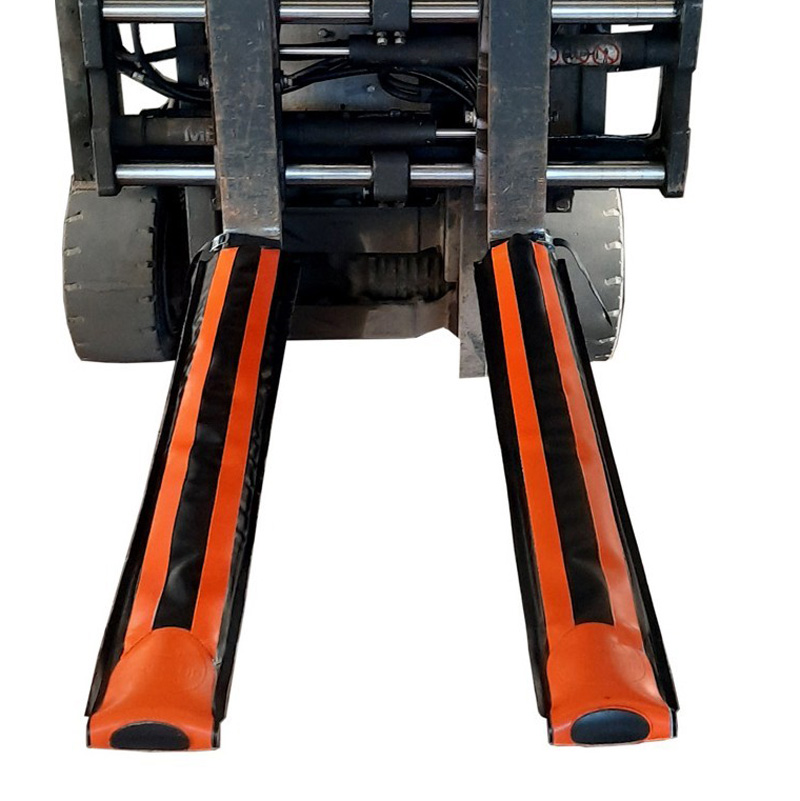 Le protezioni per forche sono state studiate per consentire maggiore sicurezza nella movimentazione dei materiali all’interno degli stabilimenti. Sono realizzate con materiale plastico ad alta resistenza alla trazione e all’abrasione, oltre che agli idrocarburi, ai prodotti chimici e alle sostanze pericolose. Sono dotate di un puntale di protezione ammortizzato e privo di spigoli vivi per proteggere i prodotti da possibili urti, graffi o rotture. Gli inserti sono ad alta aderenza per evitare di danneggiare o ribaltare il materiale movimentato. Oltre al modello standard ad uso ordinario, è disponibile il modello con maggiore grip e aderenza specifico per porta tubi o per prodotti a difficile movimentazione