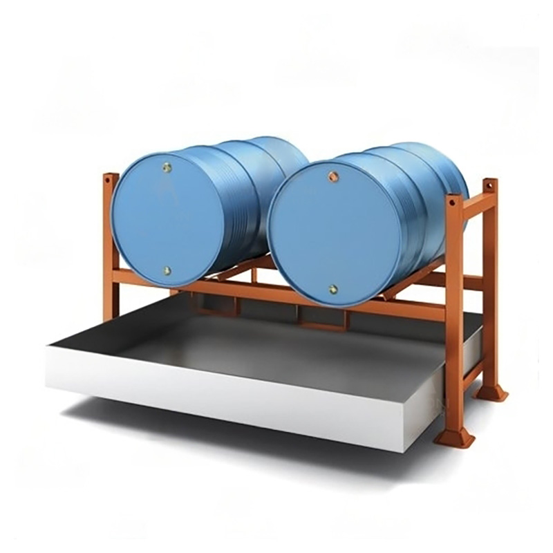 La vasca in acciaio zincato, da posizionare sugli appositi angolari posti sotto il tubolare portafusti, permette di evitare sversamenti durante le operazioni di trasferimento di liquidi.